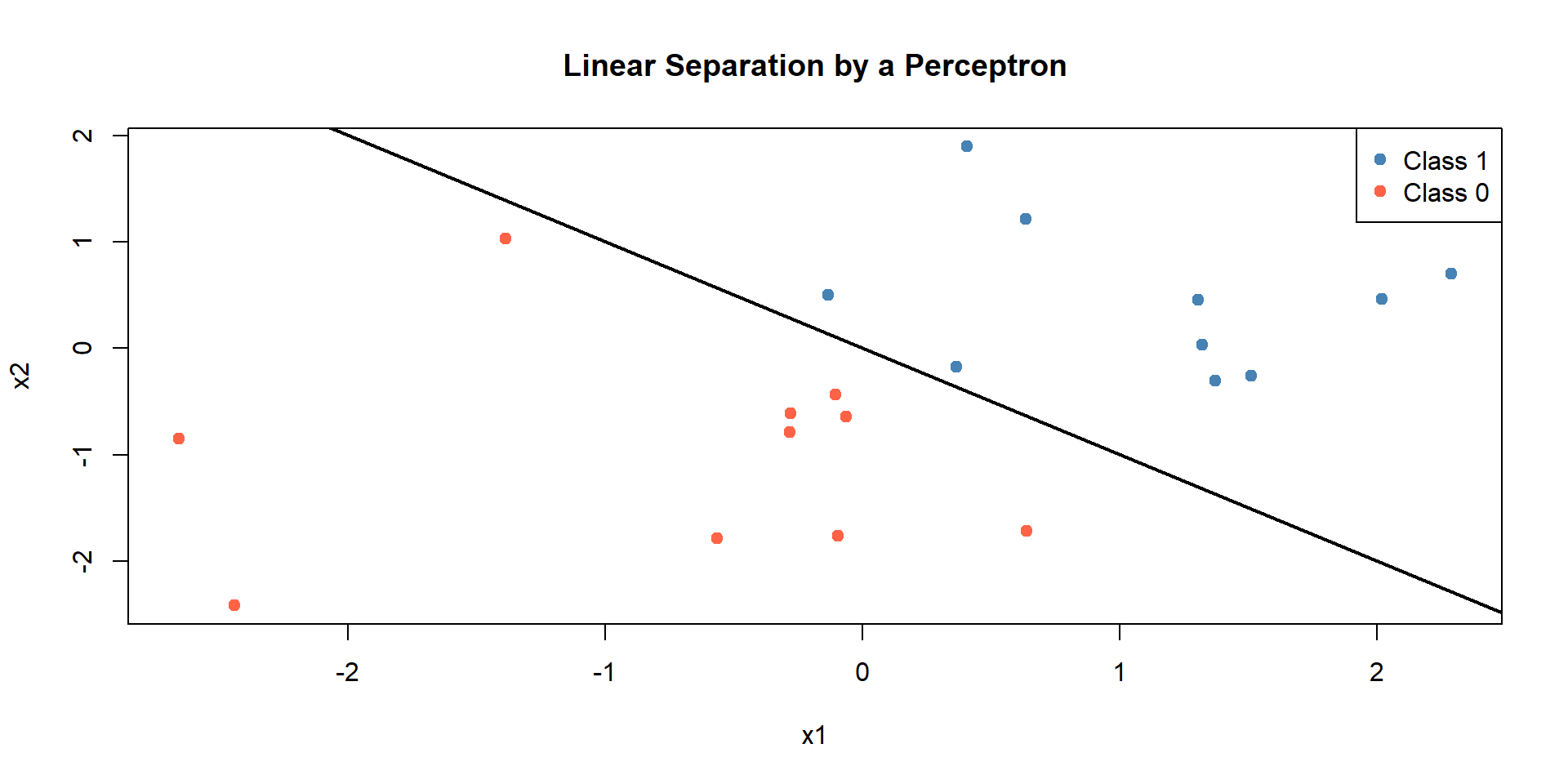 Since \(z = 0.5 > 0\), output = 1